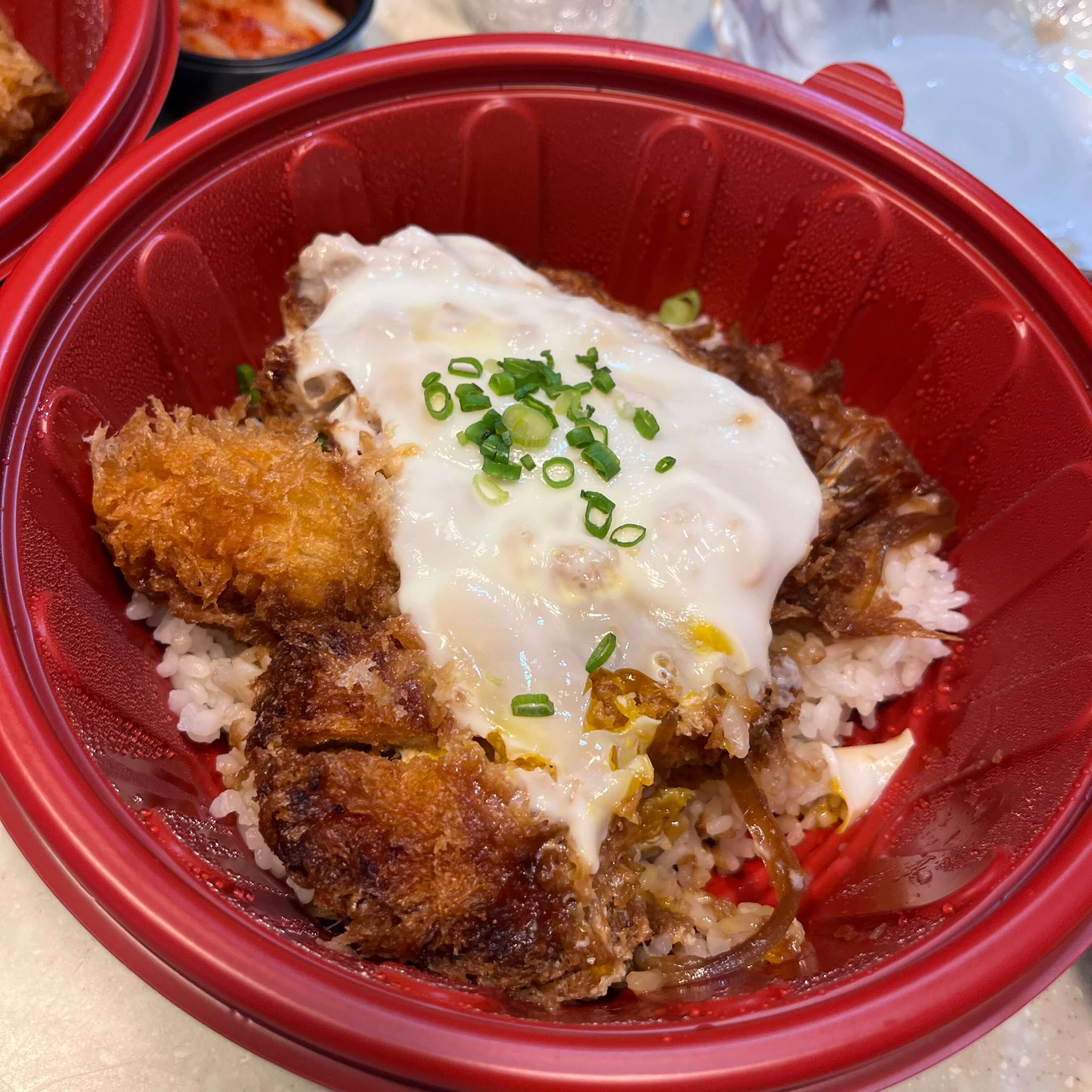 믹스카츠동은 돈카츠, 치킨카츠, 새우카츠 세 가지가 한 번에 나와서 골라먹는 재미가 있었어요.