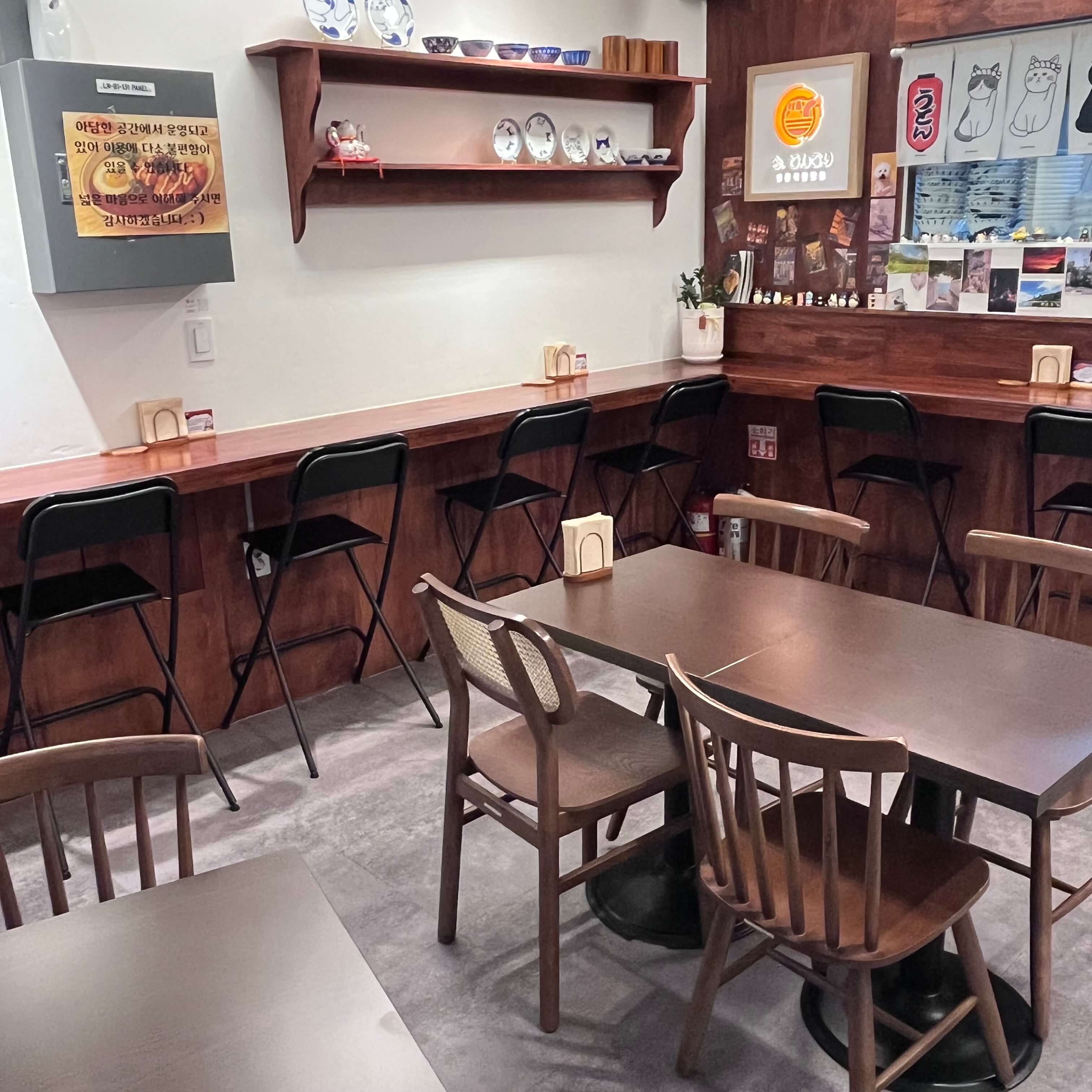 바 좌석이랑 2인 테이블 중심이라 혼밥하기 딱 좋고, 점심시간엔 직장인들로 꽉 차요.